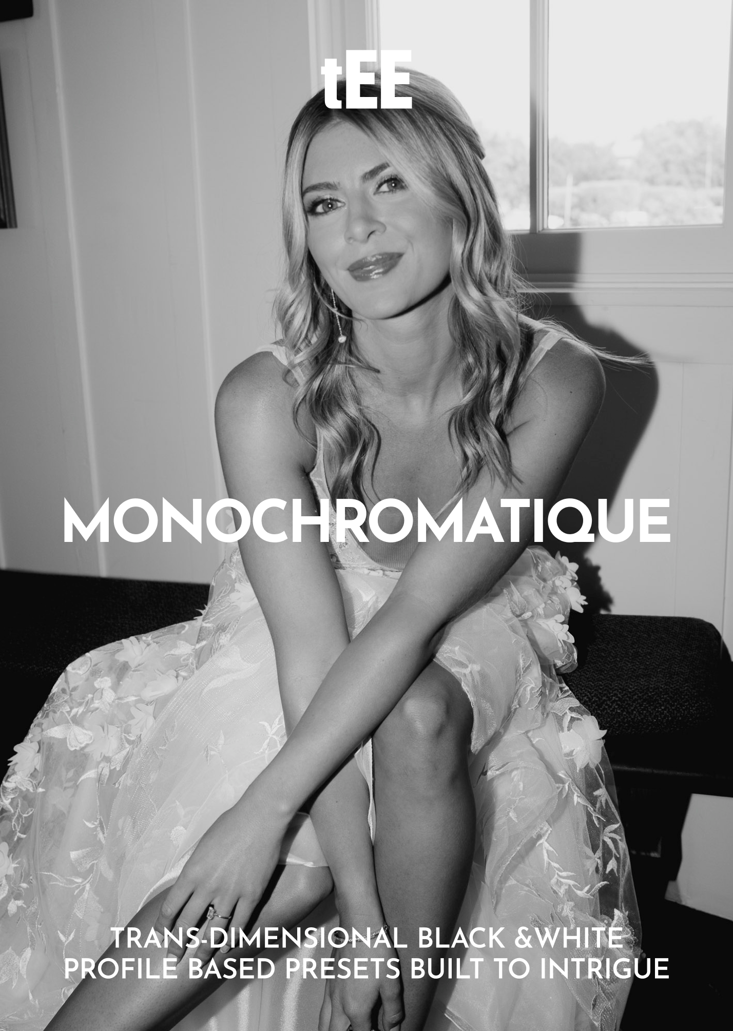 A high-key monochrome preset, balancing soft contrast and deep blacks for an airy, elegant aesthetic.